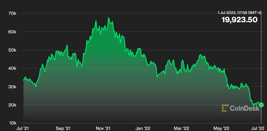 比特币过去一年走势​